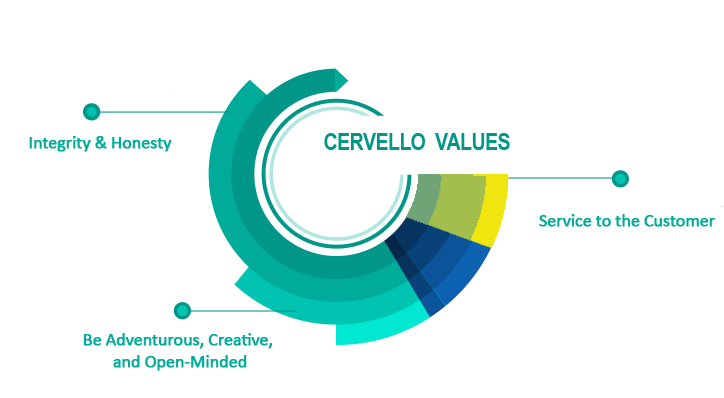 At CERVELLO, we capture opportunities and make things happen. Our Values help us build purpose, improve team cohesion and create a sense of commitment. Our core values impact our business strategy, and for any financial product purchased, our clients are guaranteed the best advice from CERVELLO as often as they will have to provide sensitive information online or over the internet.